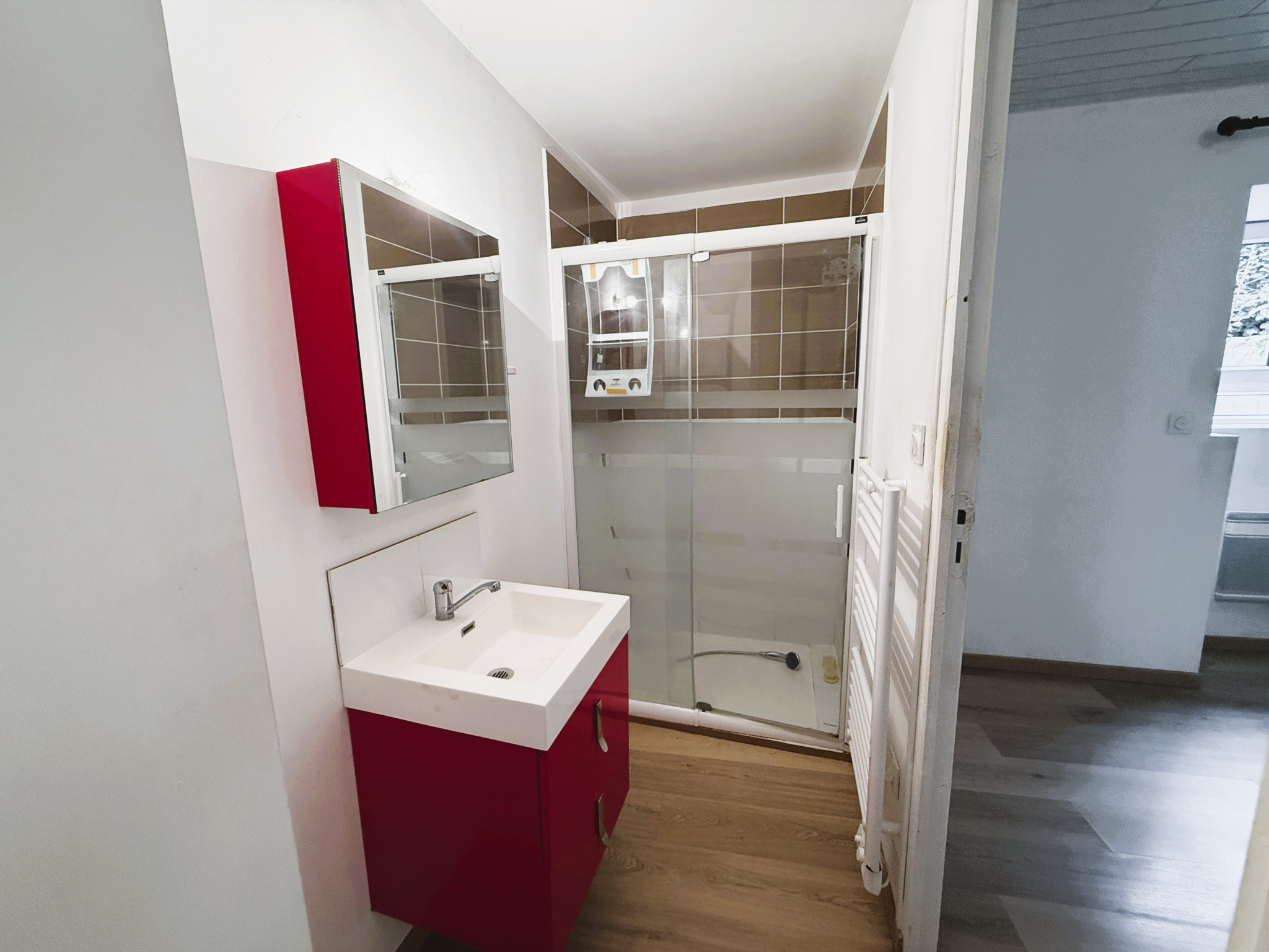 Il se compose d'un séjour / cuisine aménagée (plaque cuisson électrique, hotte, frigo congélateur, arrivée évacuation eau pour machine à laver), une chambre avec placard aménagé, une salle d'eau avec douche, meuble 1 vasque et wc.