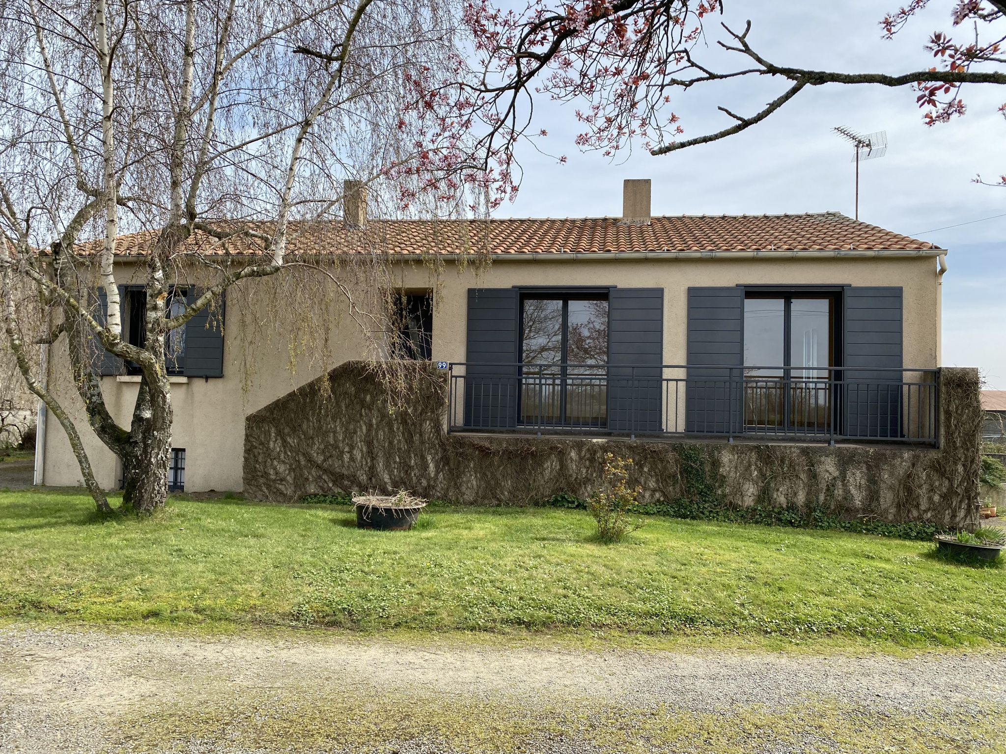 3 chambres à l'étage, un grand salon, une salle de bain et une cuisine équipée.