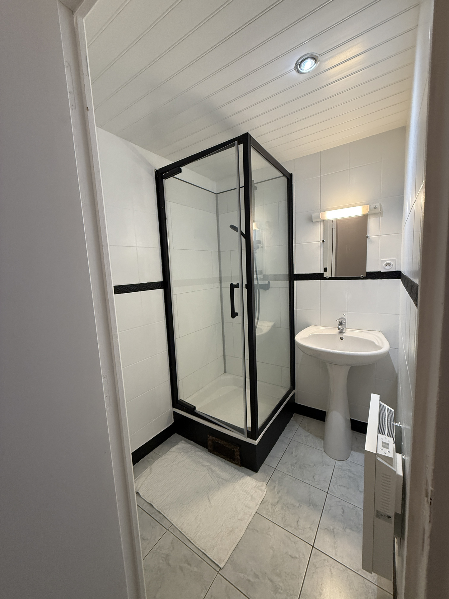 D'une salle d'eau avec douche et 1 vasque,