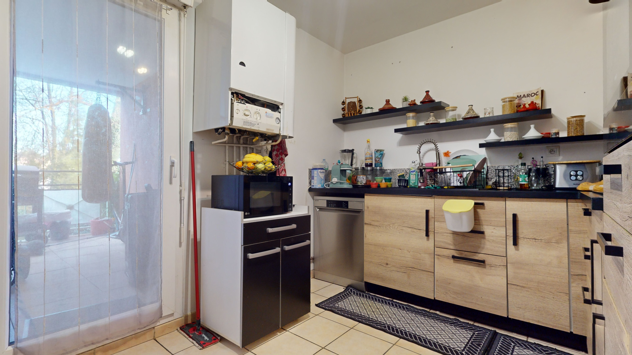 D'une superficie de 86,44m2, cet appartement s'ouvre sur une entrée de 6,58m2. Elle est suivie d'un salon de 25,93m2, baigné d'une belle lumière naturelle, et d'une cuisine de 9,26m2. Ces espaces de vie donnent directement sur une terrasse de 18,39m2, idéale pour les moments de détente et les repas en plein air. Le véritable plus de cet appartement réside dans son jardin privatif de 220m2, également accessible par un portail.