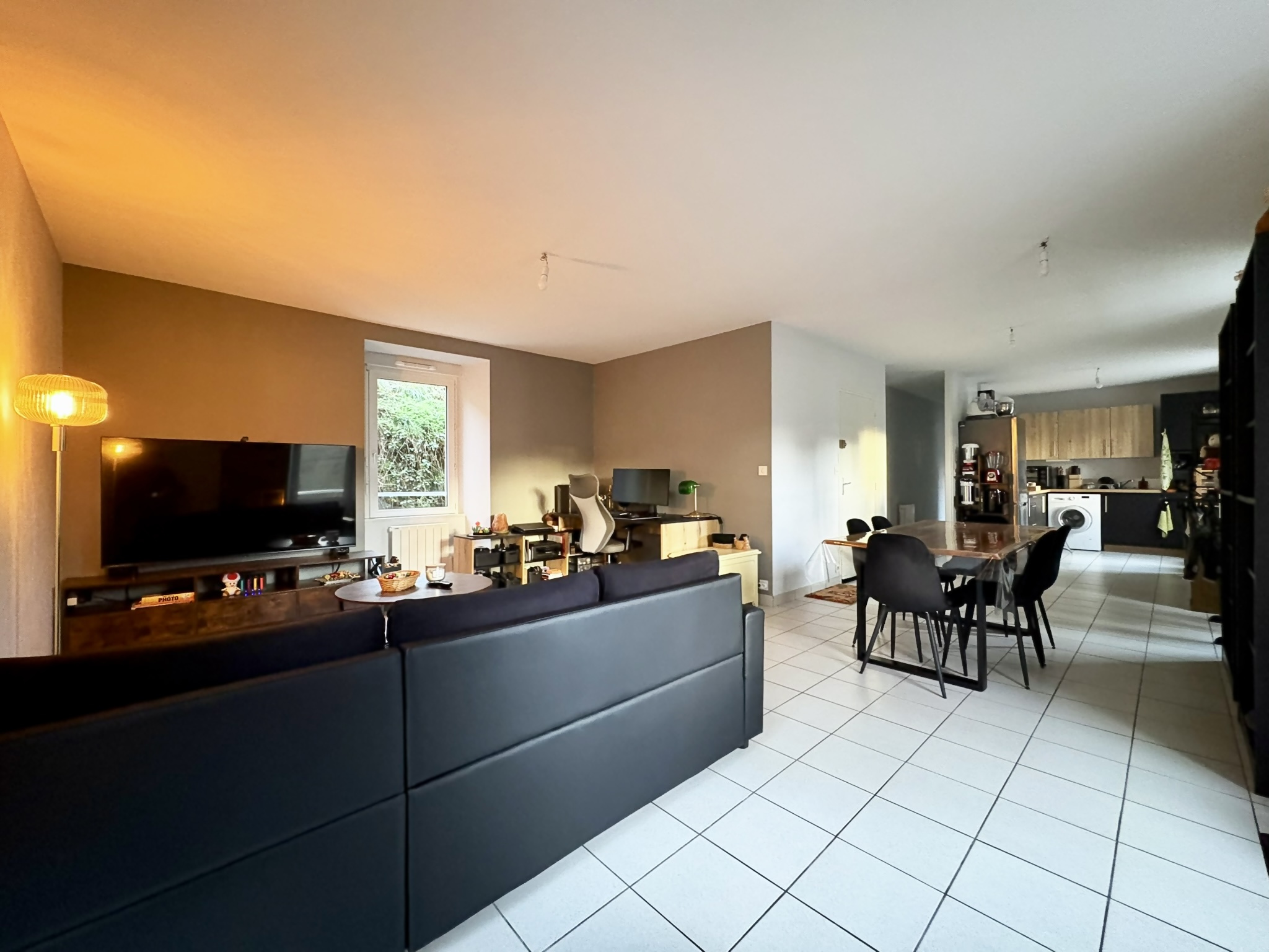 L'appartement est situé à proximité des commerces et des principaux axes routiers en direction de Vannes ou Nantes. Proche d'un joli parc pour des balades en famille.