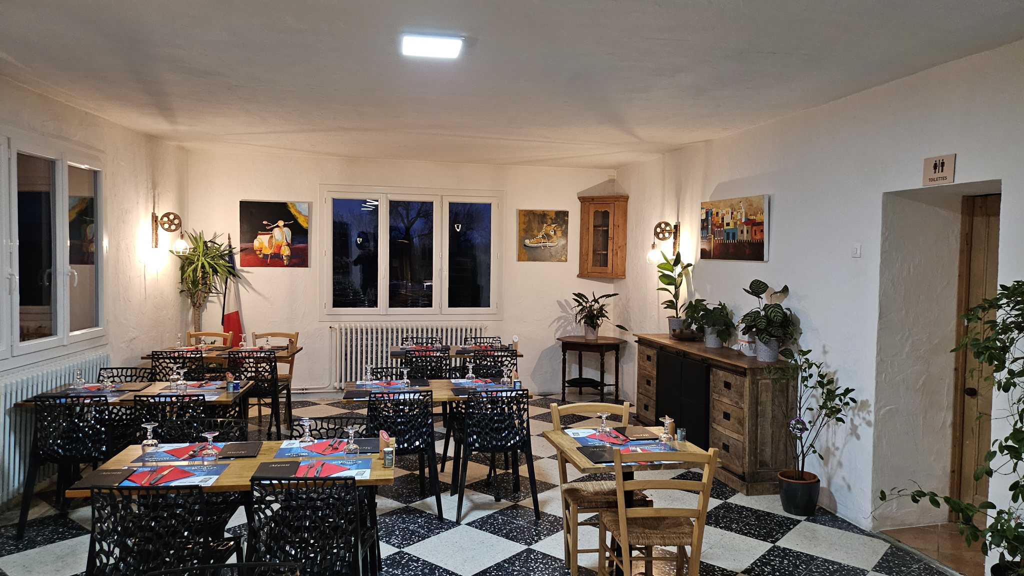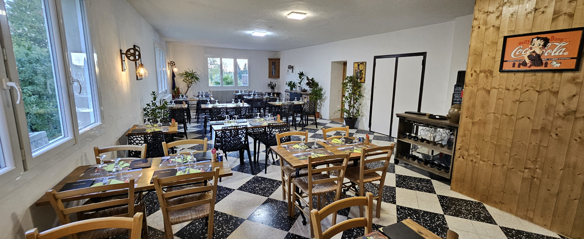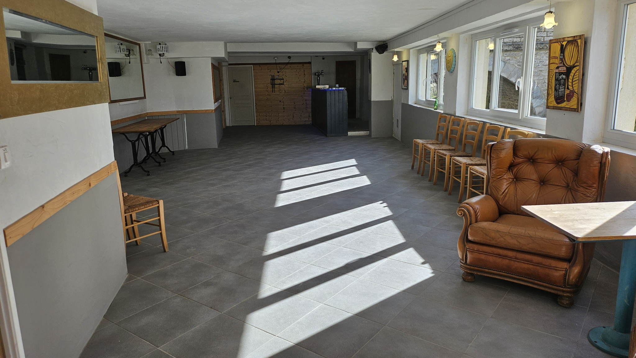 Salle de restaurant de 63 m2 avec entrée via le pub ou accès direct, WC PMR, climatisé.