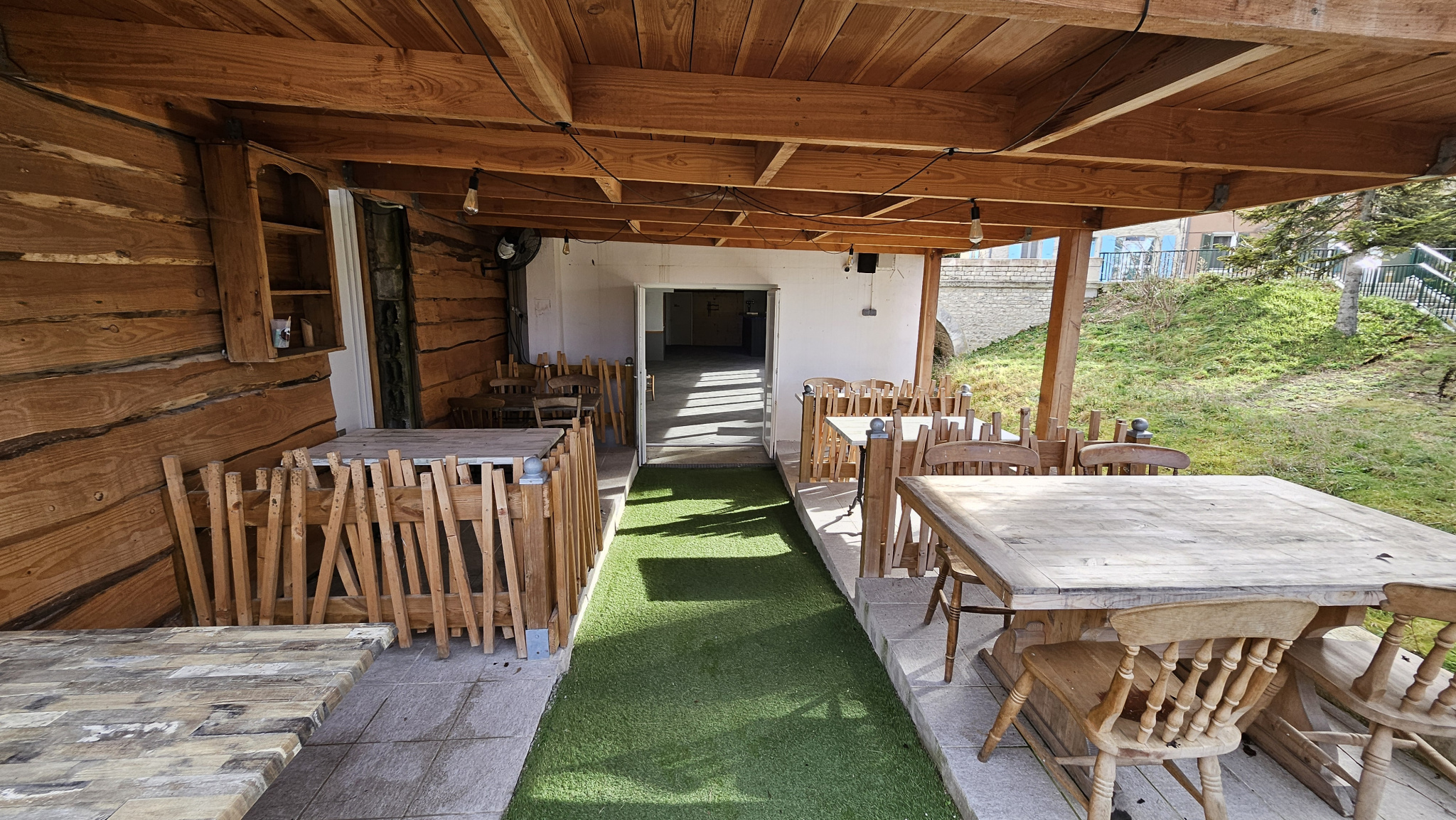 Bar/snack extérieur de 12 m2 pour restauration en plein air côté boulodrome