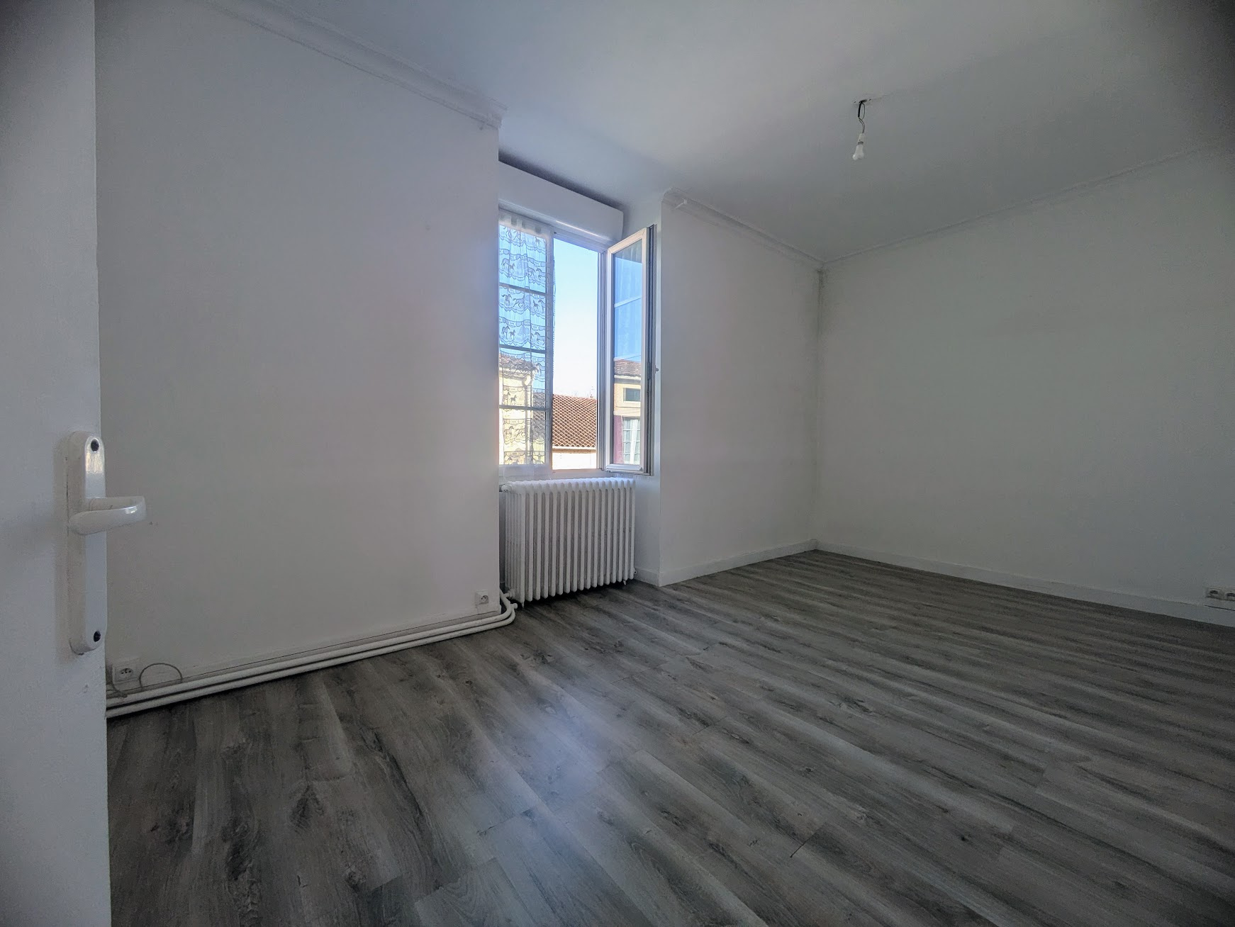 Vaste salon sur parquet avec cheminée fonctionnelle