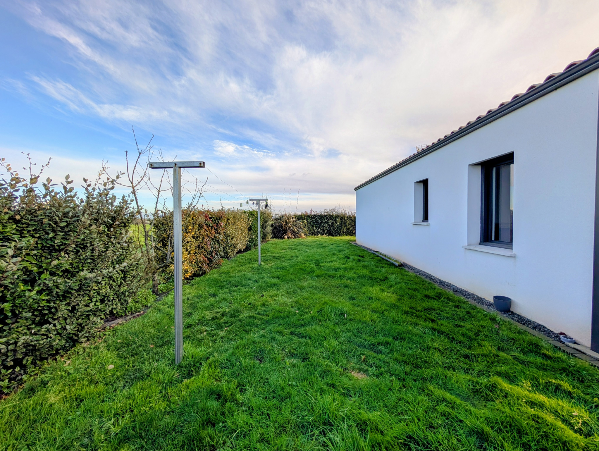 Chauffage au sol intégral par pompe à chaleur air/eau. Ouvertures en aluminium, volets roulants électriques. Assainissement conforme.