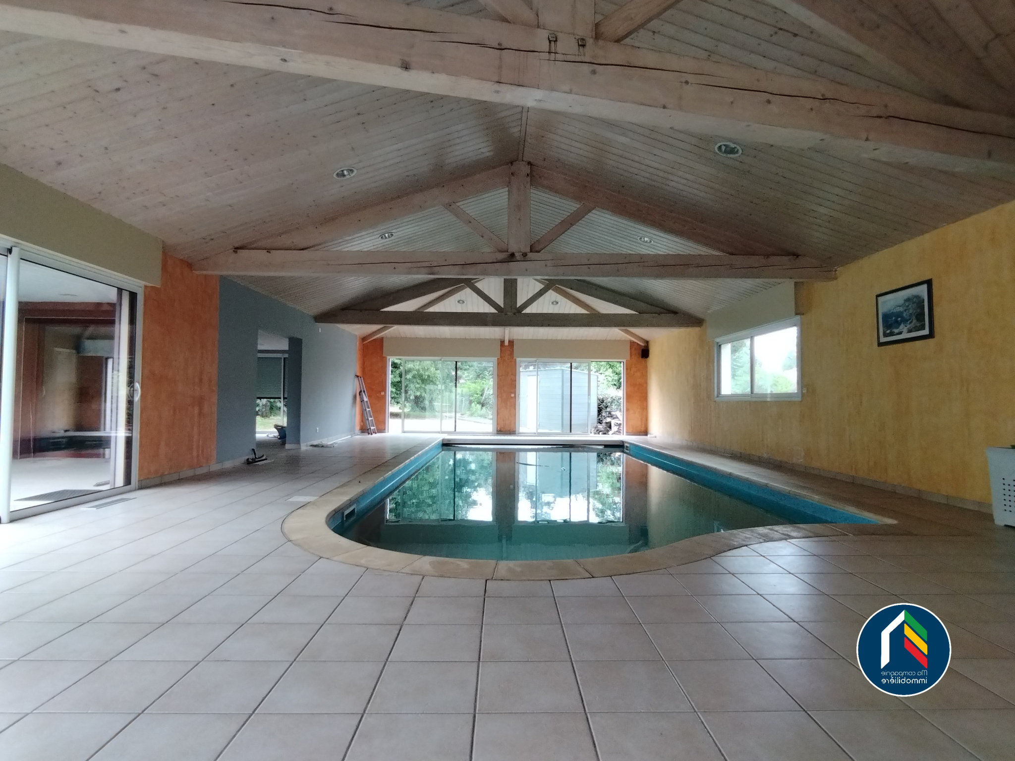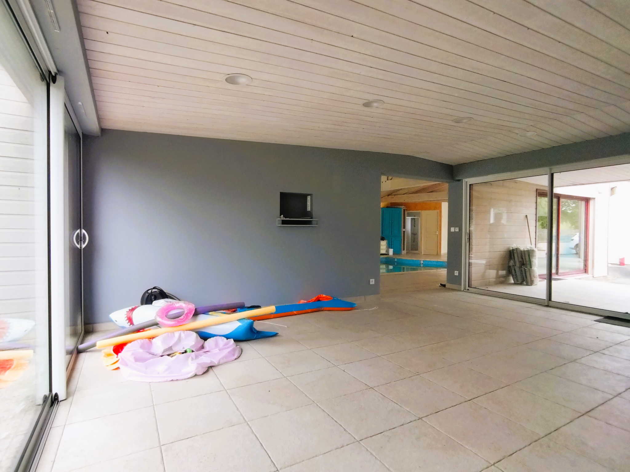 Depuis la pièce de vie, on accède à une spacieuse pièce de 135 m2 avec piscine de 11*4.5, espace détente pour pouvoir poser vos bains de soleil ou créer un bar ! La piscine est chauffée par une PAC. Attenant à cette pièce , on retrouve une salle d'eau avec toilette . Cet espace est complété par une pièce carrelée pouvant accueillir un jacuzzi, du matériel de sport ....De baux volumes pour recevoir et passer d'excellents moments.
