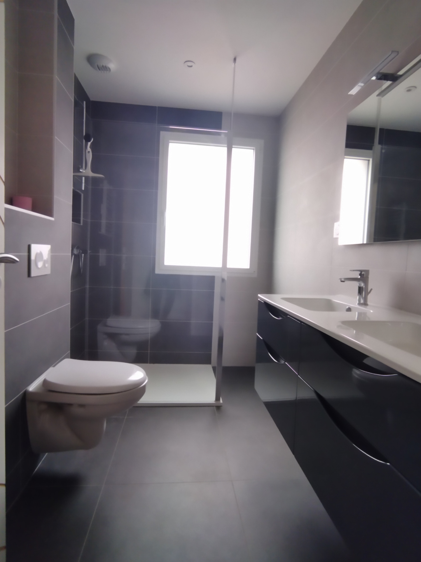 A ce niveau , on retrouve un toilette avec lave main puis une suite parentale ayant un grand dressing de plus de 4 m2, une chambre de 10 m2 et une salle d'eau avec douche , vasque et wc.