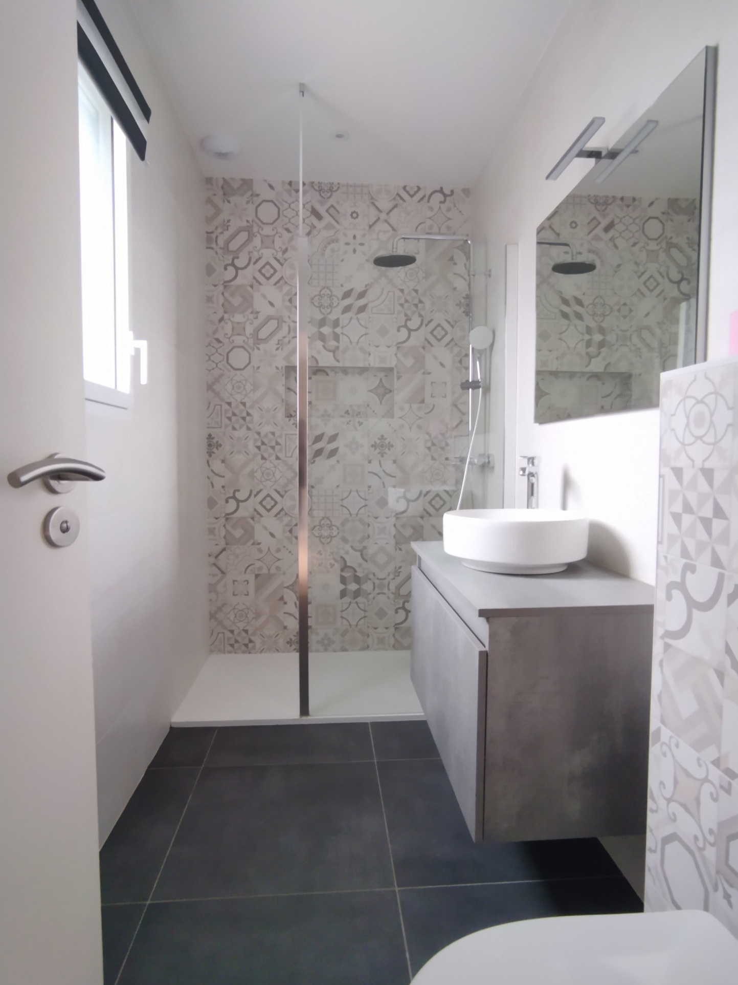 A l'étage, on retrouve 5 belles chambres avec placards ainsi qu'une salle d'eau avec douche, wc et double vasque.
