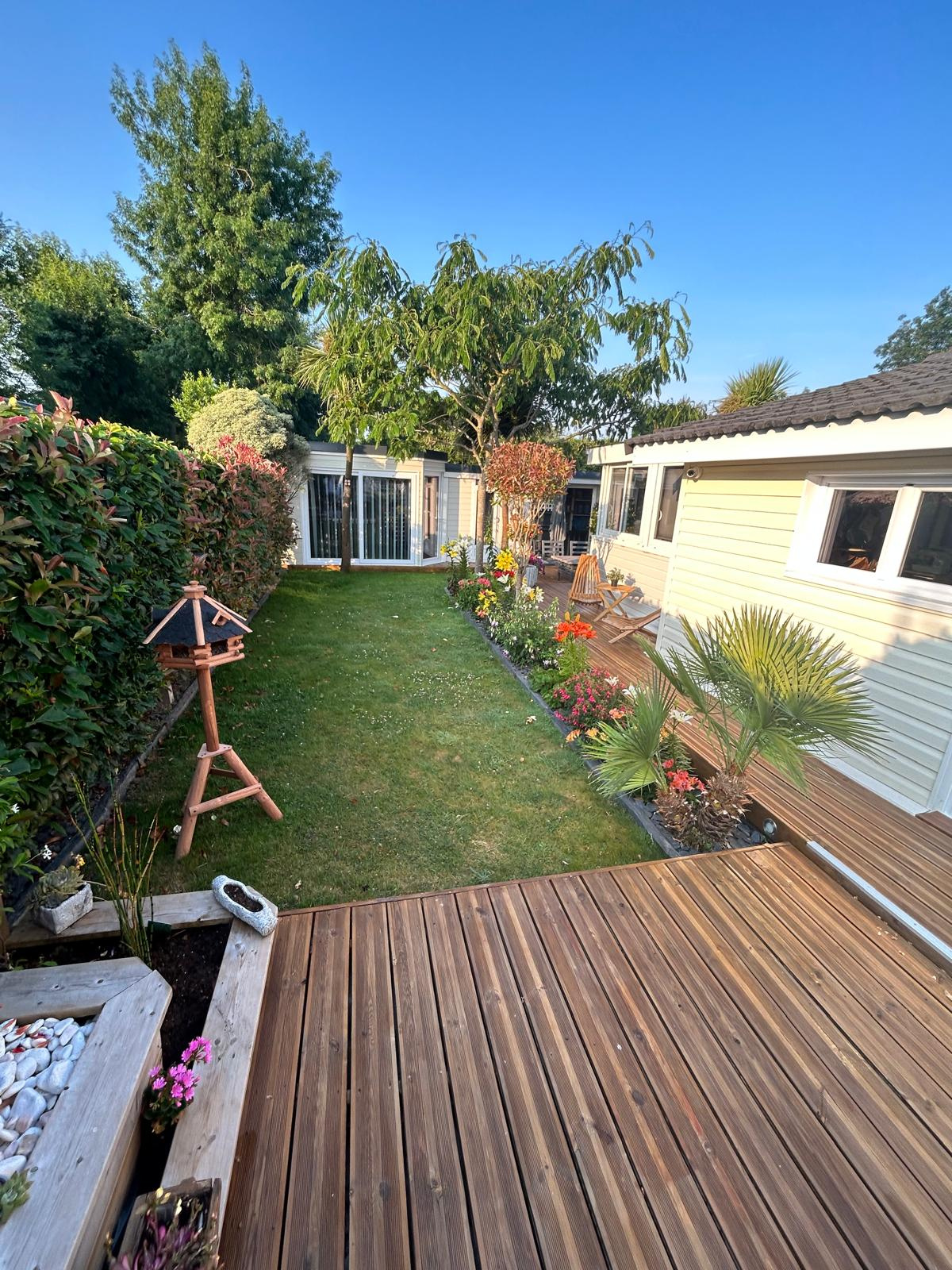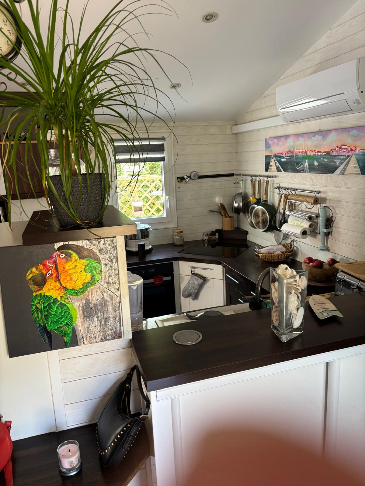 Sur un terrain clos sans vis-à-vis de 305 m2 aménagé et arboré avec goût, vous profiterez d'un chalet de 53 m2 offrant une pièce de vie avec cuisine américaine tout équipée, une chambre, un dressing (possible chambre ou bureau), une salle d'eau, un WC et une extension vitrée donnant sur la terrasse.