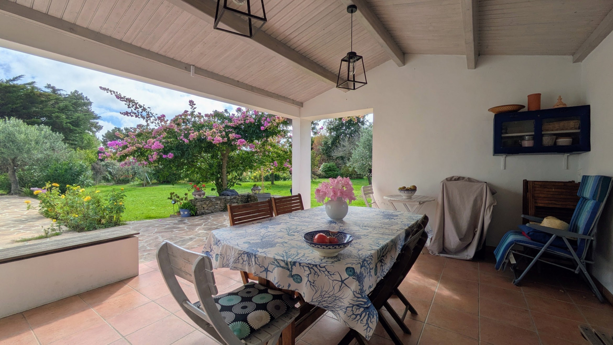 Terrasse pratique et ensoleillée avec barbecue
